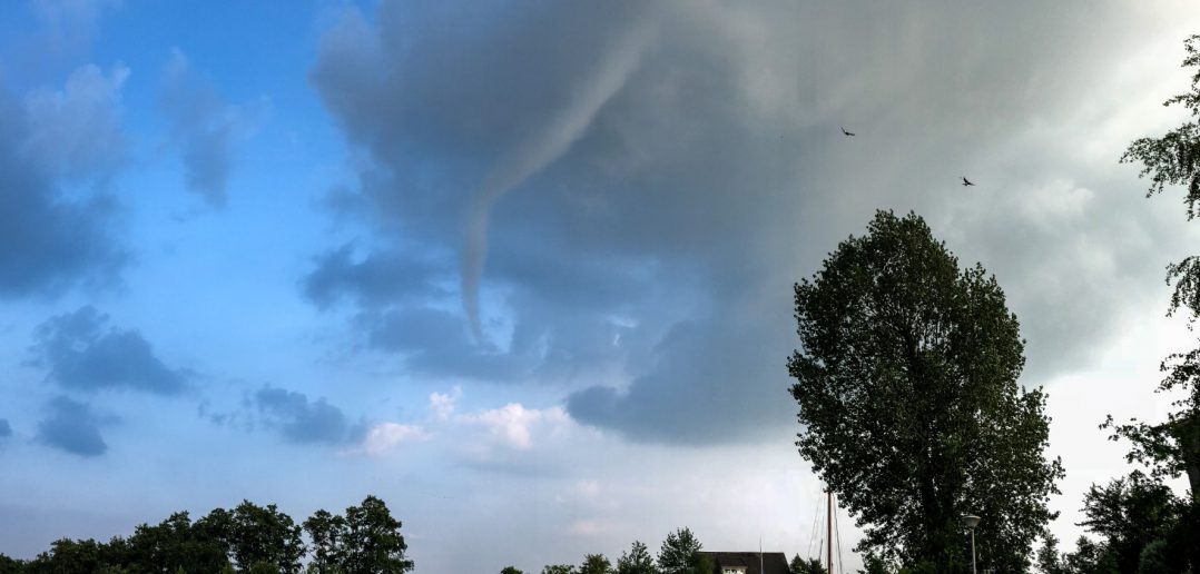 De hoos trekt met de bui mee en kan een spoor van vernielingen achterlaten.