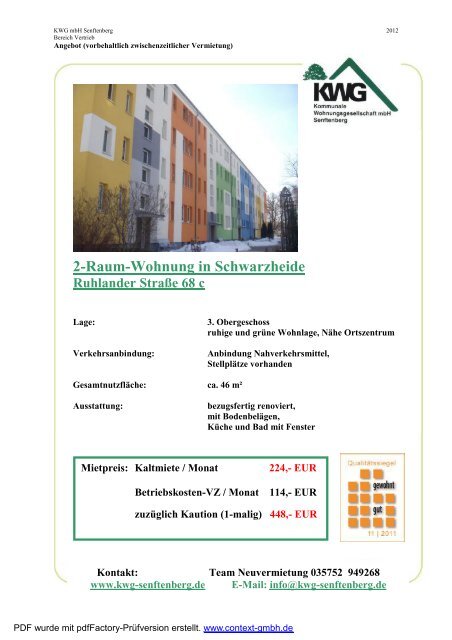 Günstige wohnung in schwarzheide mieten oder kaufen.